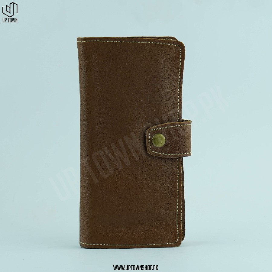 Real Leather Brown Long Wallet for Mobile with Lock LW2